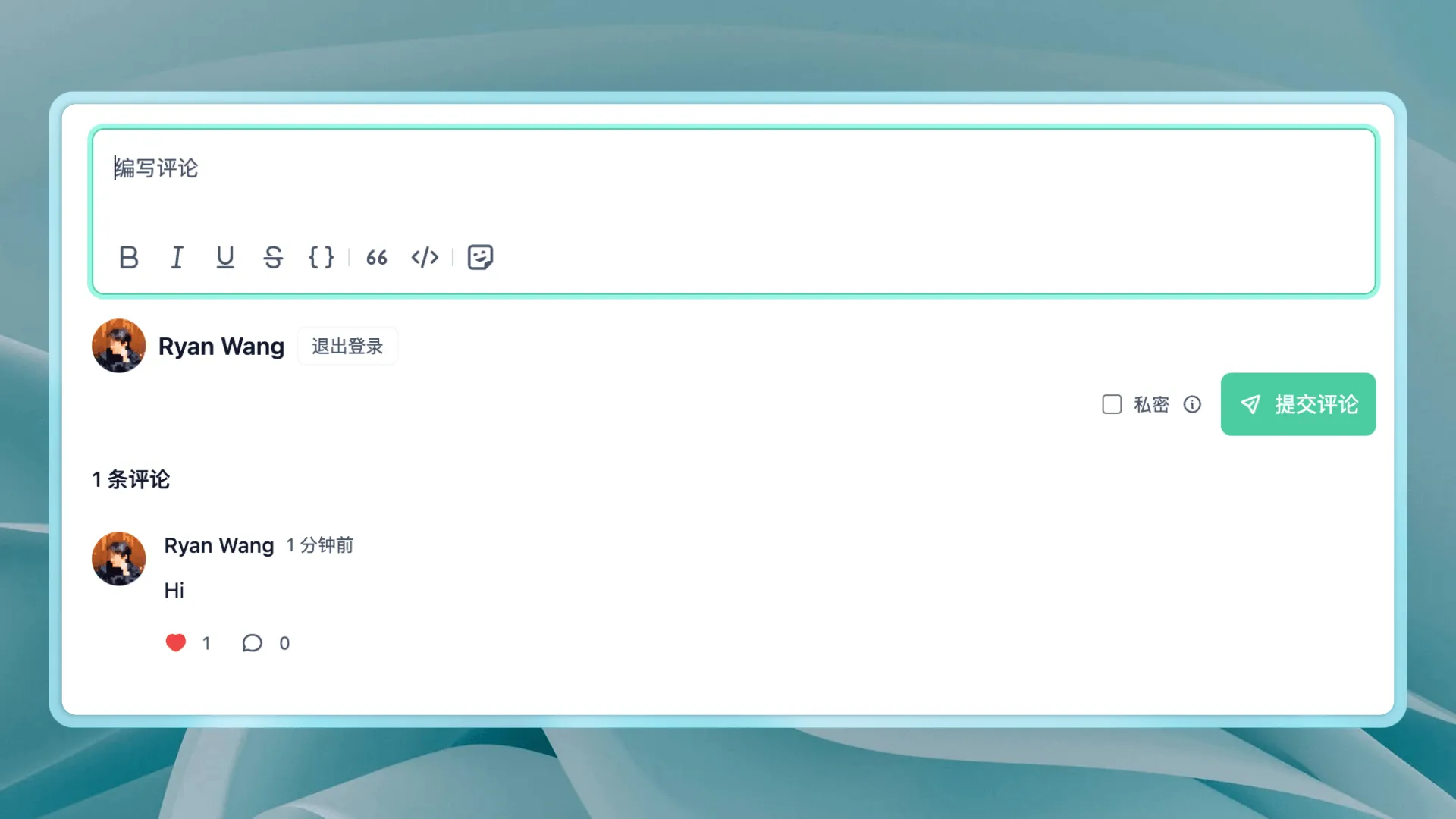 在最新发布的 Halo 2.21.7 和评论组件 3.0.0 中,已经完整的支持了评论内容的富文本功能,现在可以在评论内容中添加粗体、斜体、下划线,甚至代码块等富文本格式。