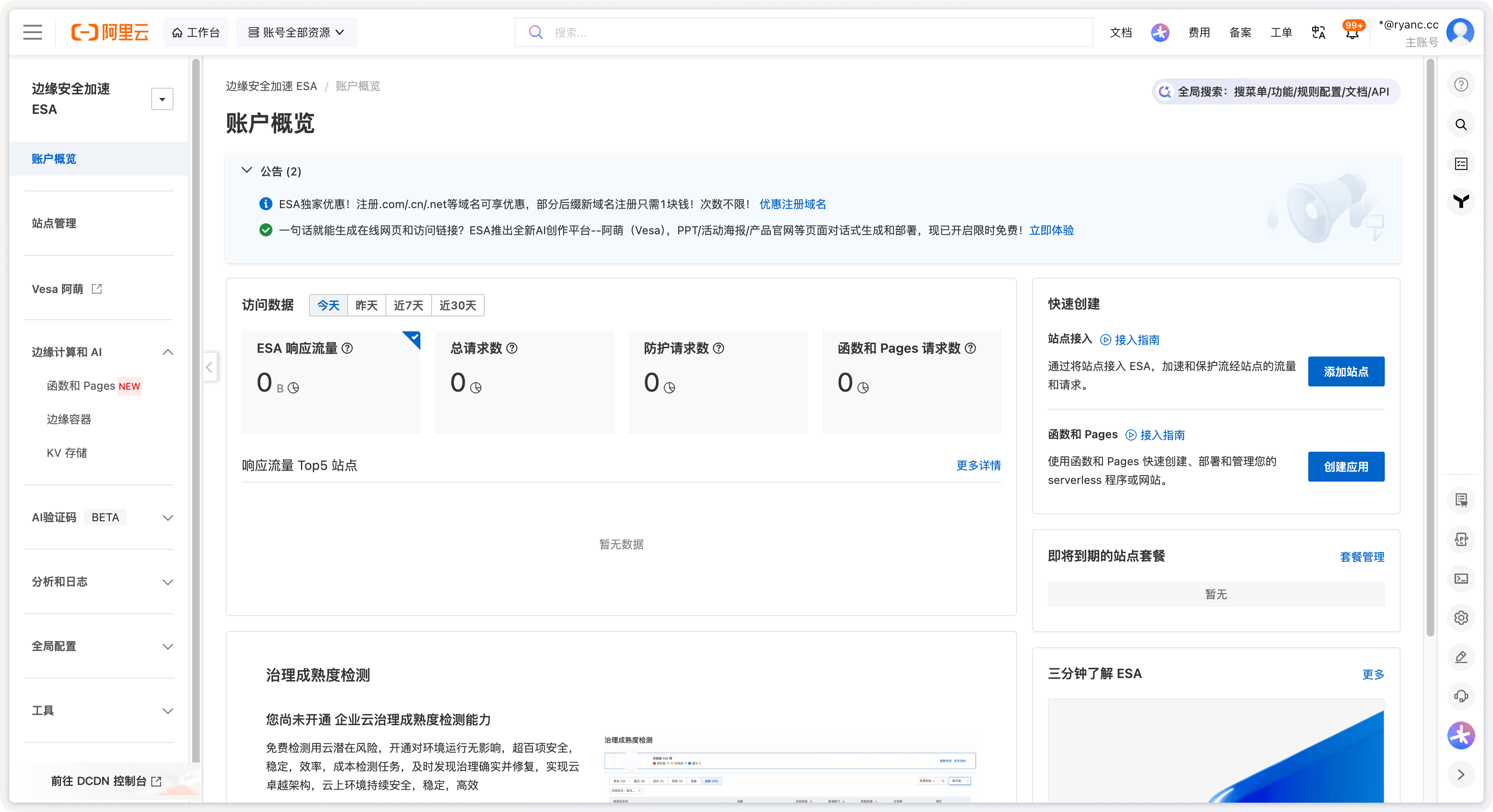 如果你此前使用的是阿里云 CDN 或 DCDN,阿里云官方已推荐将业务迁移至 ESA。ESA 与 DCDN、CDN 为相互独立的系统,你可以直接在 ESA 上重新部署站点并切换 DNS 解析生效,无需复杂的迁移操作。