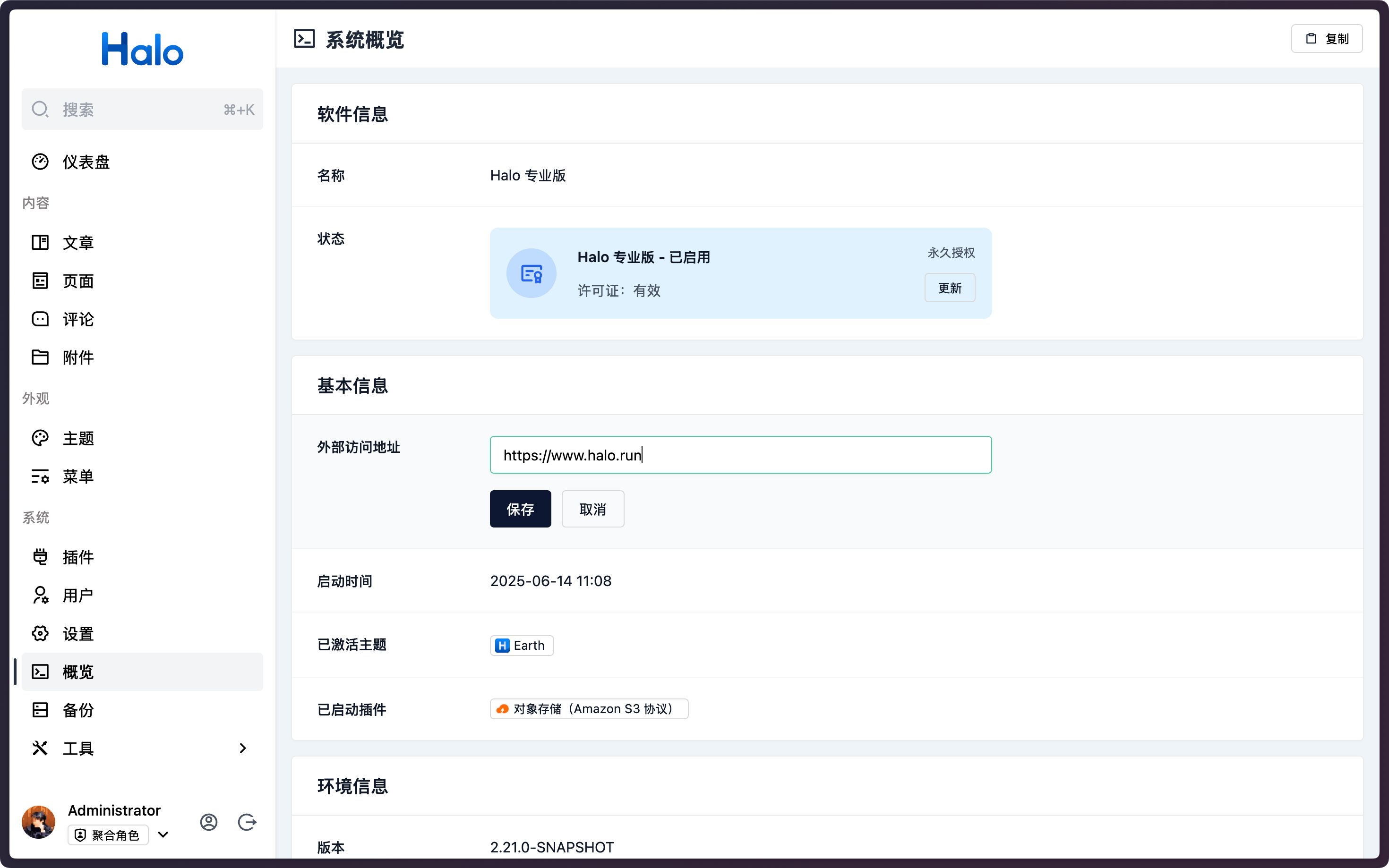 在这个版本中,Halo 支持了在 Console 控制台修改外部访问地址。