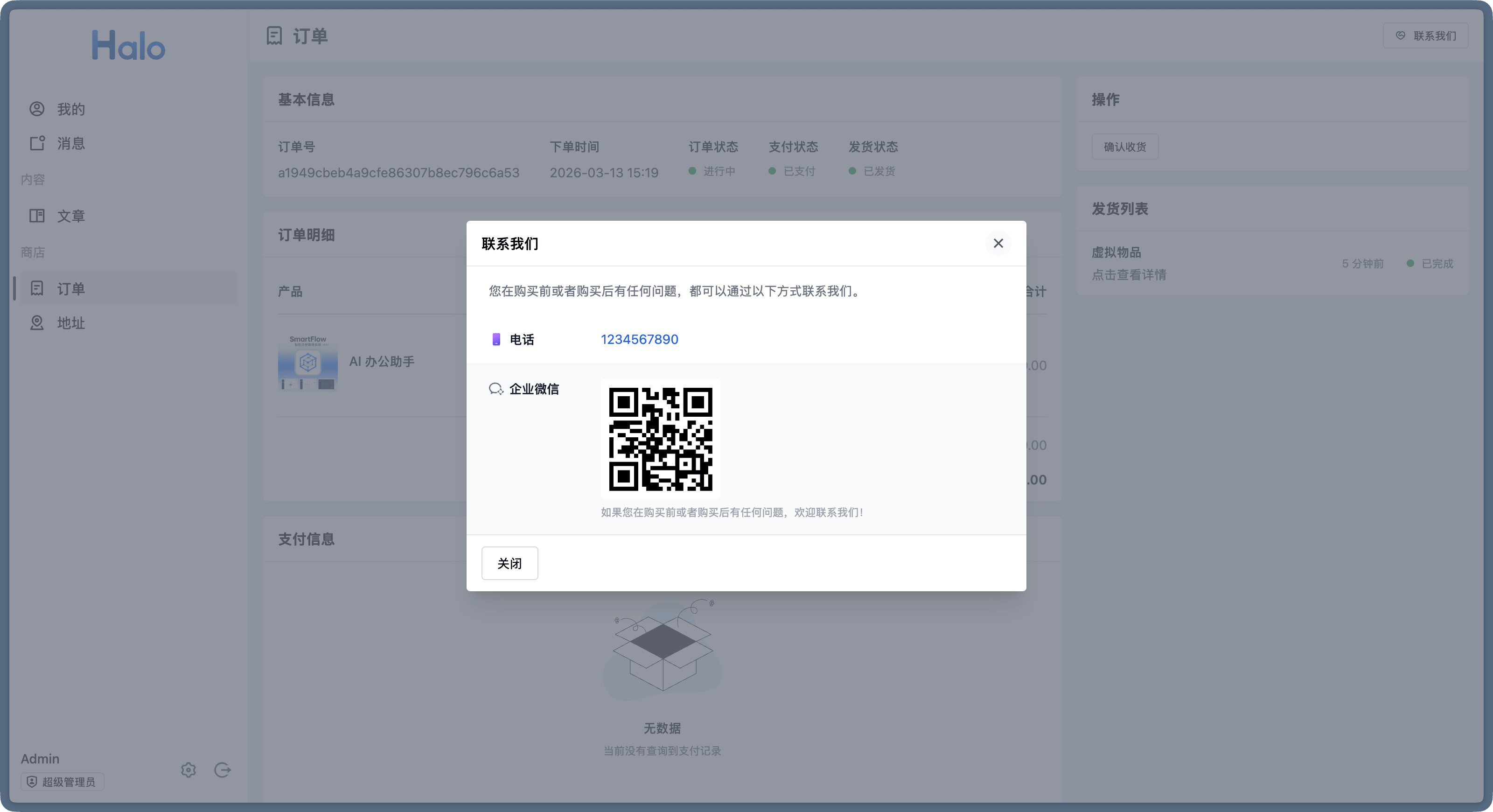 在 Halo 商业版 2.23 中,我们为商店添加了联系信息设置,方便客户在需要的时候联系网站运营人员。