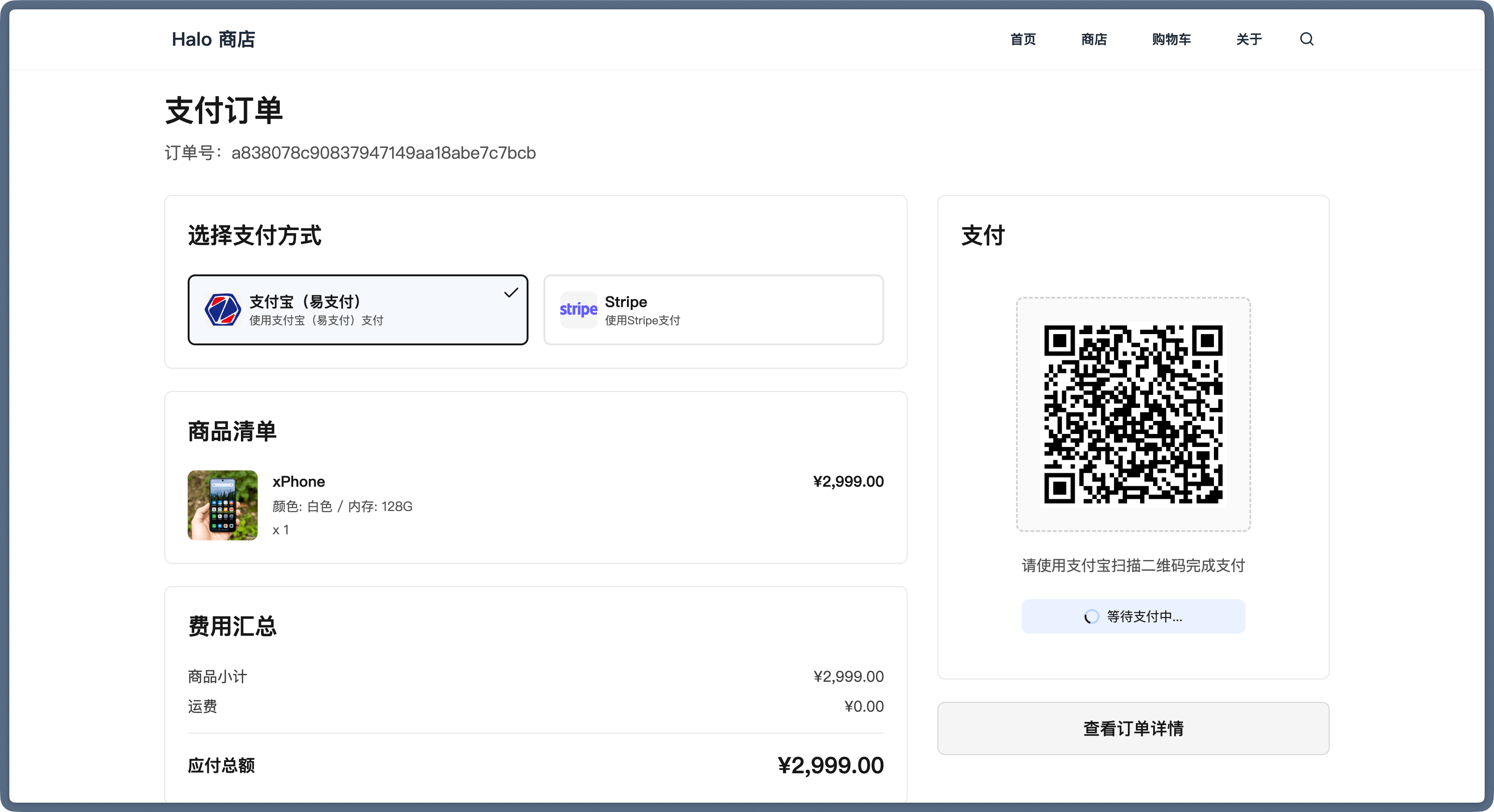 在 Halo 商业版 2.23 中,我们新增了对 Stripe 和易支付的支持,现在 Halo 商业版支持支付宝、微信支付、易支付、Stripe、银行转账(手动)、收款码支付(手动)。