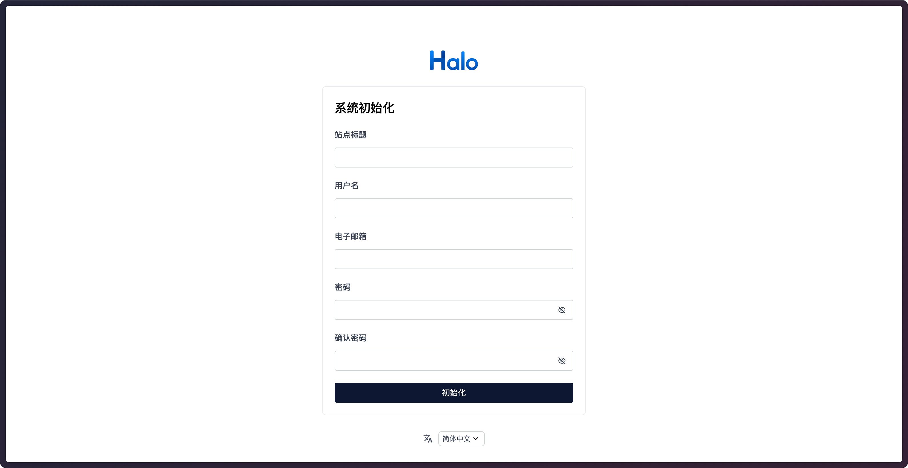 初始化 Halo(打开服务器 IP,按中文引导设置管理员账号)